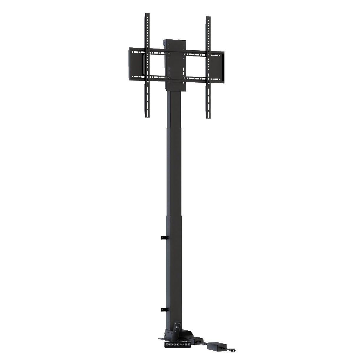 - Smooth motorized lift enables precise TV positioning for presentations with programmable height presets.